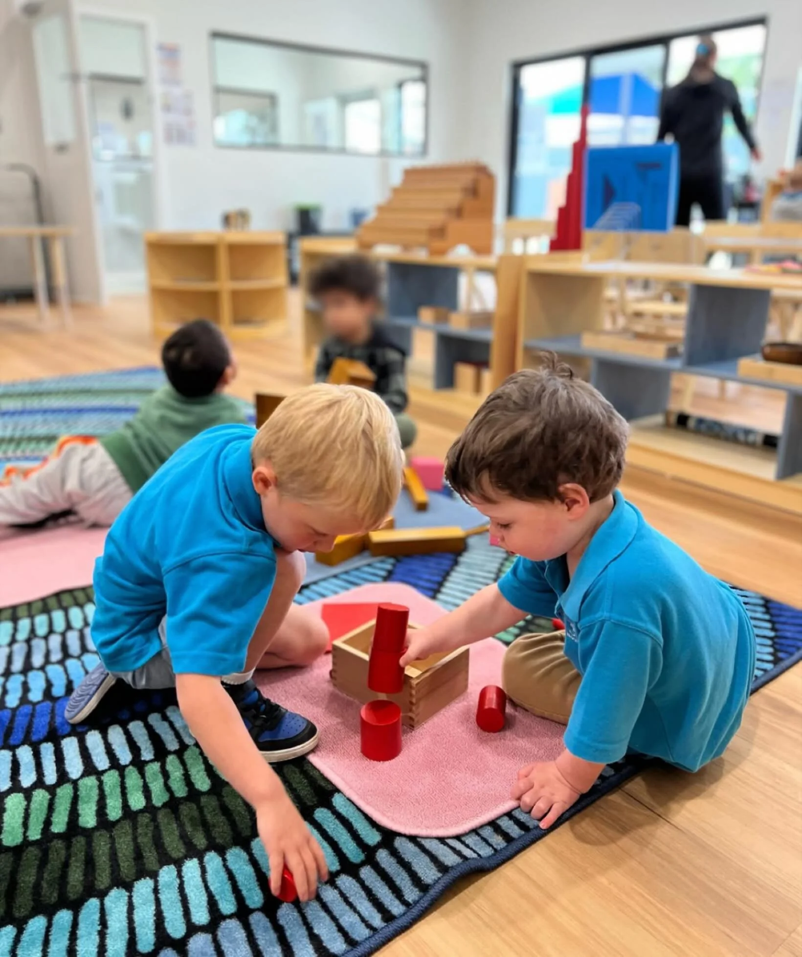 Montessori education encourages children to explore, discover, and learn at their own pace using specially designed materials that support development in early numeracy, language, sensory exploration, and practical life skills.